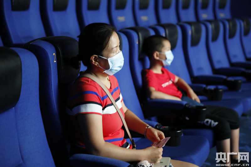 圖為一對母子在電影院觀看影片(央廣網記者 張凱航 攝)