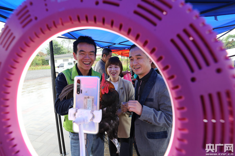 央廣網(wǎng)隴南9月26日消息(記者韓靖) 9月25日,一場直播帶貨活動在甘肅隴南成縣陳家大莊村文化廣場進行,隴小南網(wǎng)貨供應(yīng)中心副經(jīng)理李林萍和同事一起在電商平臺上銷售農(nóng)戶養(yǎng)殖的土雞。在半個小時的直播過程中,共賣出117只土雞,最高在線人數(shù)4029人。