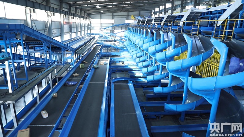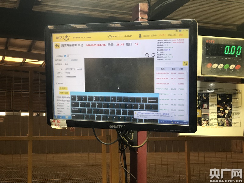 11月11日,中通快遞京南轉(zhuǎn)運(yùn)中心(涿州),該中心自動(dòng)分揀設(shè)備分為上下兩層,自動(dòng)化分揀設(shè)備的單線體規(guī)模為亞洲最大(央廣網(wǎng)記者 黃一博 攝)
