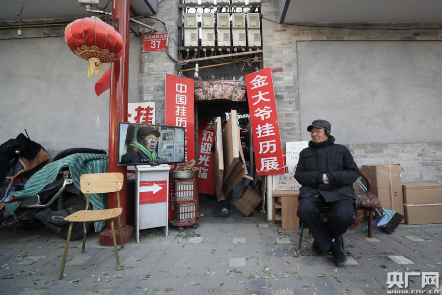最近一段時間是金安光一年中最忙碌的時候,一到年末,來小店買掛歷的客人絡(luò)繹不絕,20多平方米的小店,掛滿了近百種掛歷。照顧生意之余,金安光跟顧客的幾句問候常常透著北京人的幽默和親切。
