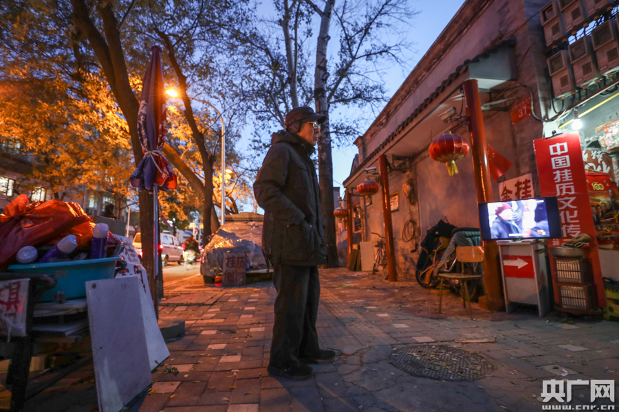 傍晚時分,金安光在店外等待顧客(央廣網(wǎng)記者 韓靖攝)