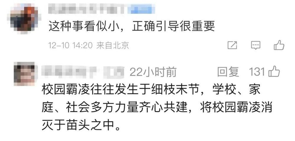 這件事妥善處理,大概率蘊藏著老師和家長平時教育方式的理性成熟。小孩哥勇敢發(fā)聲,是這種教育的結(jié)果,其實也是教育過程的體現(xiàn),值得點贊推廣。