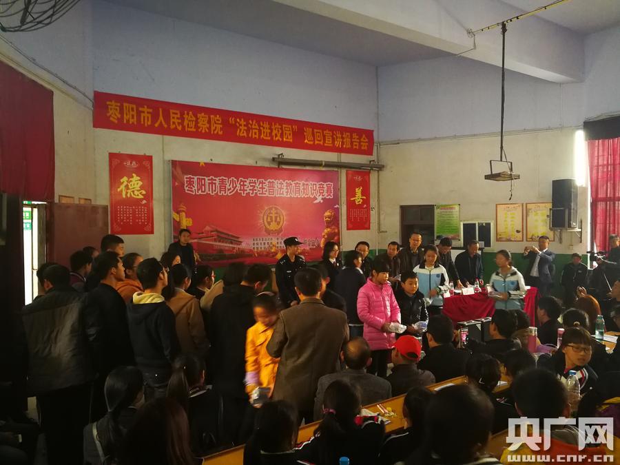 湖北省棗陽市路地多部門聯合舉行青少年普法教育競賽 央廣網武漢11月14日消息(記者張毛清 通訊員豐雪瓶)13日,湖北省棗陽市路地多部門聯合舉行全市青少年普法教育競賽,旨在預防減少校園暴力、杜絕鐵路線外傷亡事故發(fā)生,增強全市青少年法制意識,提升未成年人守法及自我保護能力。 11月13日上午,由棗陽市教育局、市司法局、市普法辦、市委綜治辦、市檢察院、棗陽車站派出所、棗陽工務工區(qū)等單位聯合組織發(fā)起的“法治進校園暨棗陽市青少年學生普法教育競賽”在棗陽市第二實驗小學舉行。來自全市12個鄉(xiāng)鎮(zhèn)、棗陽市區(qū)30余所小、初、高學校500余名學生代表參加了此次競賽。 該次普法競賽圍繞《未成年人保護法》、《預防未成年人犯罪法》、《鐵路法》、《治安處罰法》,采取閉卷考試的形式、對學生們進行了法律知識測試。市檢察院、棗陽車站派出所制作法律知識動漫公開播放,并采取以案說法的形式,對學生們進行未成年人犯罪預防及鐵路安全保護法制教育。 競賽按照小學、初中、高中組,設置了一、二、三等獎及優(yōu)秀獎,各單位參會領導親自為獲獎學生頒發(fā)獎品及榮譽證書。