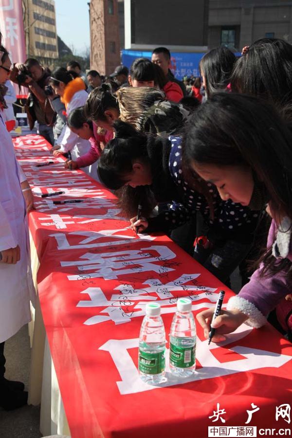 “民族地區(qū)艾滋病防控大型公益宣傳”簽名活動現(xiàn)場(央廣網(wǎng)記者 賈宜超 攝)