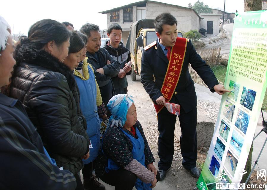 央廣網(wǎng)貴陽1月21日消息(記者孟海 郜林筱 通訊員姜澤鵬)1月21日,成都鐵路局凱里火車站職工在向學生和村民講解鐵路安全知識。為認真開展好“幸福暖冬 關愛下鄉(xiāng)”安全教育活動和提高鐵路沿線中、小學生和居民安全意識。當日,凱里火車站黨員團員青年志愿者來到滬昆鐵路沿線苗鄉(xiāng)侗寨、農戶家庭、田間地頭、集貿市場、廠礦學校,采用講解宣傳掛圖、解答群眾咨詢等方式宣傳鐵路安全知識23場次,共向過往群眾發(fā)放愛路護路宣傳單6500多份,受教育群眾和學生達5000余人,幫助沿線村民和學生掌握鐵路有關安全知識,提高鐵路沿線群眾及中小學生愛路護路、遵紀守法的意識,減少鐵路交通事故的發(fā)生,確保鐵路運輸安全。