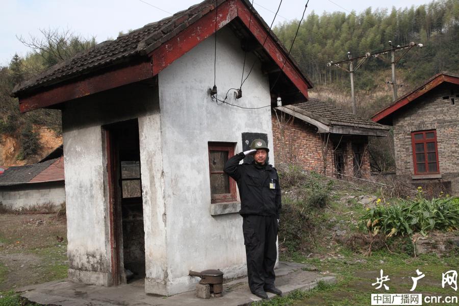 張應朝的工作崗位就在隧道口十來米外,抬頭看,是望不到頂?shù)倪B綿大山。幾乎是每隔半小時,載客或載貨的列車就要在隧道里鉆進鉆出。張應朝筆直地站立著,向每列火車敬個禮,然后跑回小崗亭,寫好安全記錄。張應朝說,看火車,就是他們的工作。