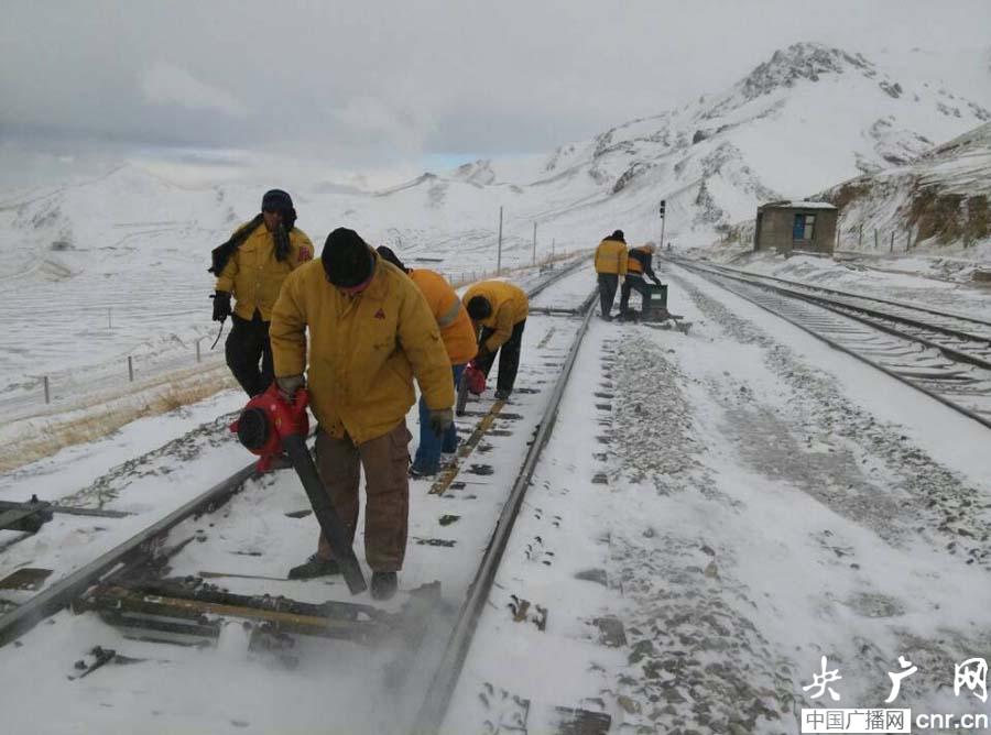 烏斯特車站鐵路員工認(rèn)真清理積雪保障安全 (央廣網(wǎng)發(fā) 姚旭東攝)