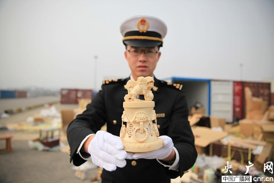 大連海關(guān)查獲象牙及象牙制品近38公斤(央廣網(wǎng)發(fā) 李文明攝)(央廣網(wǎng)記者 賈鐵生 攝)