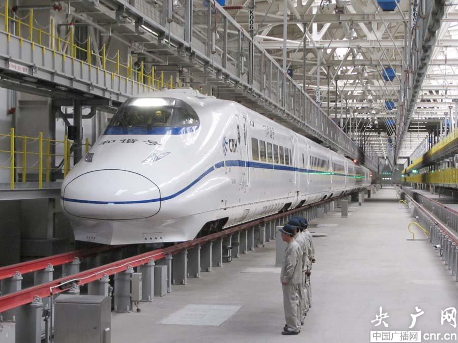 動檢車即將從烏魯木齊動車運用所駛出(央廣網(wǎng)記者 吳卓勝 攝)