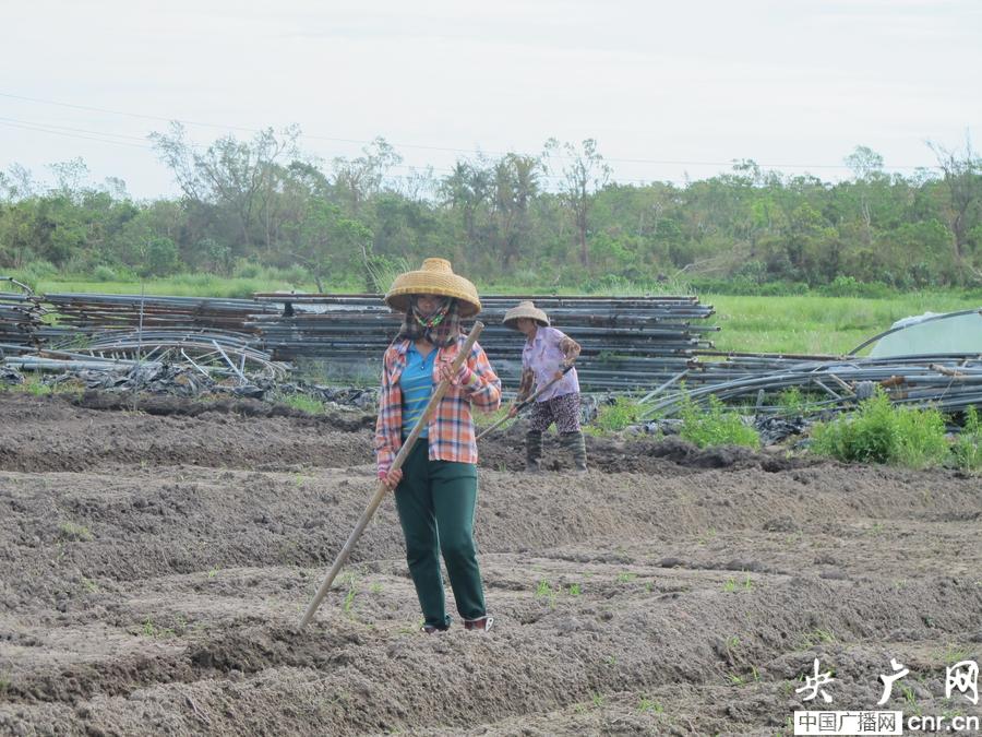 走進文昌潭牛鎮(zhèn)的一片蔬菜基地,梁亞寬正帶領(lǐng)著工人們清理土地上倒塌的大棚。一場臺風(fēng)吹跑了梁亞寬200多畝即將上市的葉菜,損失達1000多萬,臺風(fēng)后要想把蔬菜基地恢復(fù)原貌還需要再投入300多萬。梁亞寬準備從朋友那借點錢再加上自己的存款,重新投入,爭取三個月內(nèi)全部恢復(fù),看著眼前已經(jīng)清理好的第一批20多畝土地種上了新苗,梁亞寬信心滿滿。