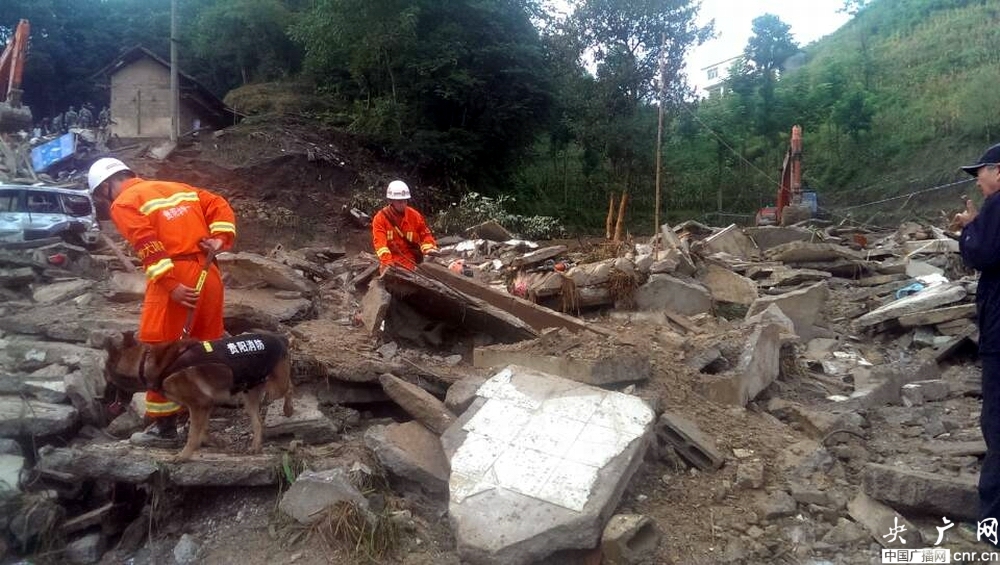 當(dāng)?shù)卮迕窀嬖V記者,小壩組所在地原本是礦山,民房是被垮塌山體所掩埋。目前,有關(guān)部門及鄉(xiāng)鎮(zhèn)領(lǐng)導(dǎo)干部300多人,甕福磷礦、福泉市磷礦、川恒等3支專業(yè)救援隊伍及消防隊伍200多人,總計500多人參與搶險救援,現(xiàn)場投入救援機械20余臺套、搜救犬及生命探測儀等設(shè)備,施救工作正在連夜展開,另有500多名警力維護(hù)現(xiàn)場秩序。