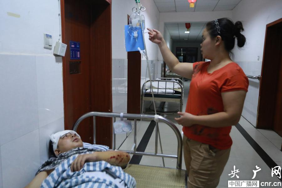 傷者親人在醴陵中醫(yī)院進行護理 (央廣網(wǎng)發(fā) 王海迪 攝)