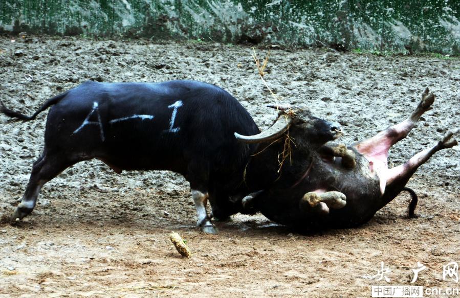當天,云南“瀘西巨無霸”與貴州的12號之間進行冠亞軍決賽,云南“瀘西巨無霸”發(fā)起“閃電戰(zhàn)”,把12號斗牛碰翻在地。最終來貴州12號斗牛獲得了第二名,獲得獎金6萬元;貴州的8號獲得第三名,獲得了獎金1.5萬元;貴州的18號則獲得第四名,獎金0.6萬元。(姜澤鵬 李應(yīng)光攝)