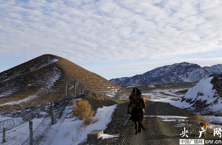 11月底的塔克什肯已是銀裝素裹,最低氣溫已達到零下35度。有的邊境地區(qū)已被大雪覆蓋,道路不通。為加強邊邊境管控,防止發(fā)生涉外問題,塔克什肯邊防連組織巡邏分隊乘馬對中蒙邊境實施巡邏。官兵們在邊境線上時而騎馬穿越蘆葦叢,時而牽馬通過被雪覆蓋的山溝,還不時停下來定點觀察,構(gòu)成一道靚麗的風(fēng)景線。