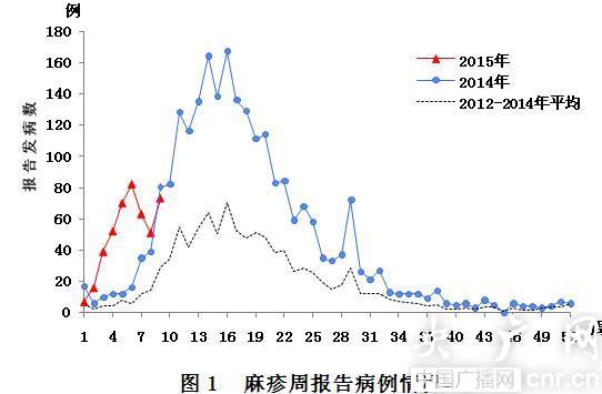 麻疹周報(bào)告病例情況 北京市衛(wèi)生計(jì)生委紀(jì)晉文制(央廣網(wǎng)記者 李文蕊 攝)