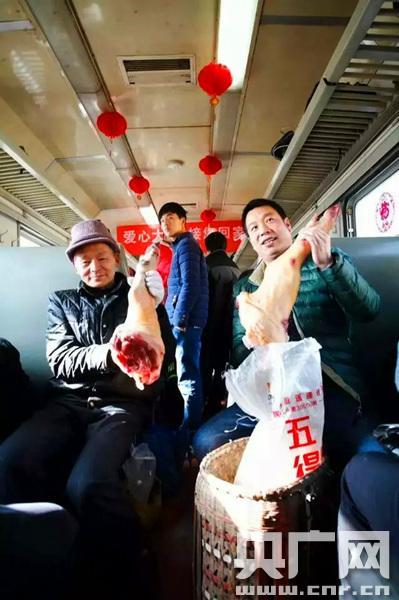 央廣網(wǎng)西安1月21日消息(記者劉濤 通訊員陳燕 丁毅)遠(yuǎn)山含黛,綠水蜿蜒,還有不時(shí)閃過的麥田,乘坐在漢中至陽平關(guān)8361/8362次“小慢車”上,望著窗外,滿眼盡是這樣秀麗的景象。但最吸引旅客的目光,卻是車廂內(nèi)迎面襲來的喜慶年味。