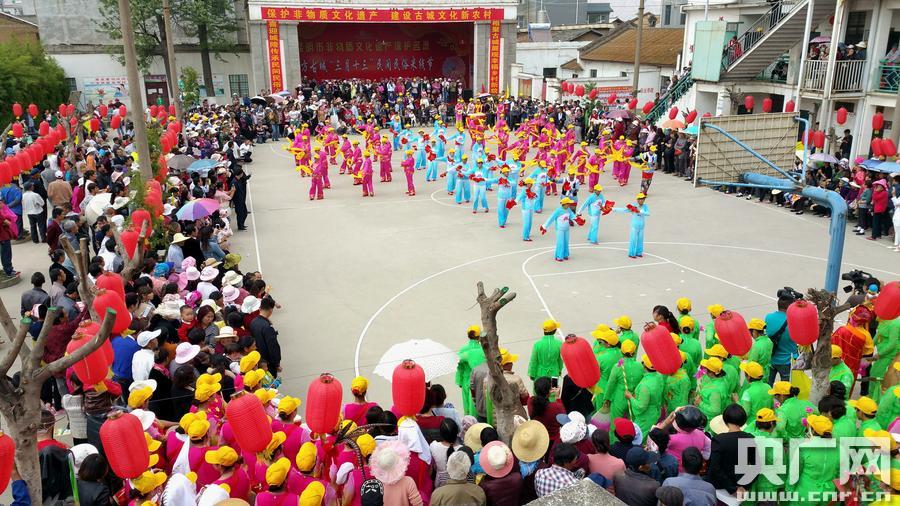 晉寧縣古城村的“米線節(jié)”,始于清代光緒年間“迎城隍趕廟會”活動,至今已有300多年的歷史,本是當?shù)匕傩胀ㄟ^迎接文武城隍來祈求風調(diào)雨順、求保安居樂業(yè)的一項傳統(tǒng)民俗活動。因為廟會當天,家家戶戶必以米線待客,管夠管飽,2012年正式更名為“米線節(jié)”。2015年,下方古城“三月十三民間民俗米線節(jié)”被列入昆明市非物質(zhì)文化遺產(chǎn)保護名錄。