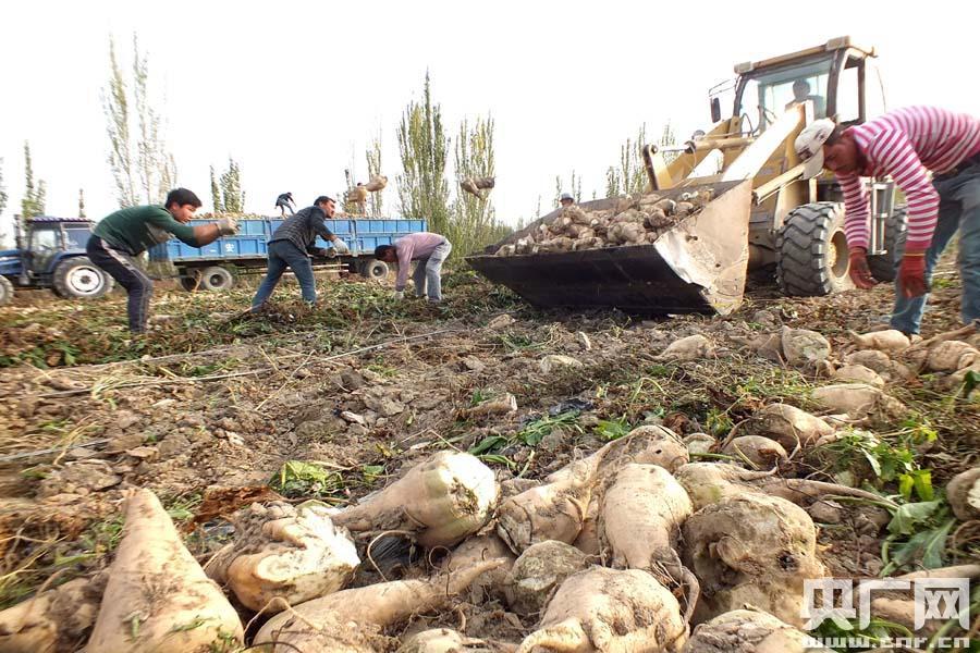 新疆焉耆農(nóng)民們正忙著收獲甜菜(阿里木江·毛拉肉孜攝)