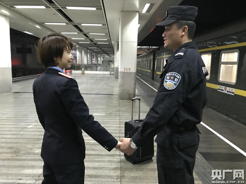 陳敏是廣鐵集團(tuán)廣九客運(yùn)段深烏車隊(duì)的一名列車廣播員,她愛(ài)人鄧軍湘是惠州鐵路公安處東莞東站派出所的一名執(zhí)勤特警,倆人因鐵路結(jié)緣,相識(shí)相識(shí)相愛(ài),今年春運(yùn)前不久才領(lǐng)完證,喜酒都來(lái)不及擺,蜜月也來(lái)不及度,就馬上投入繁忙的春運(yùn)工作。