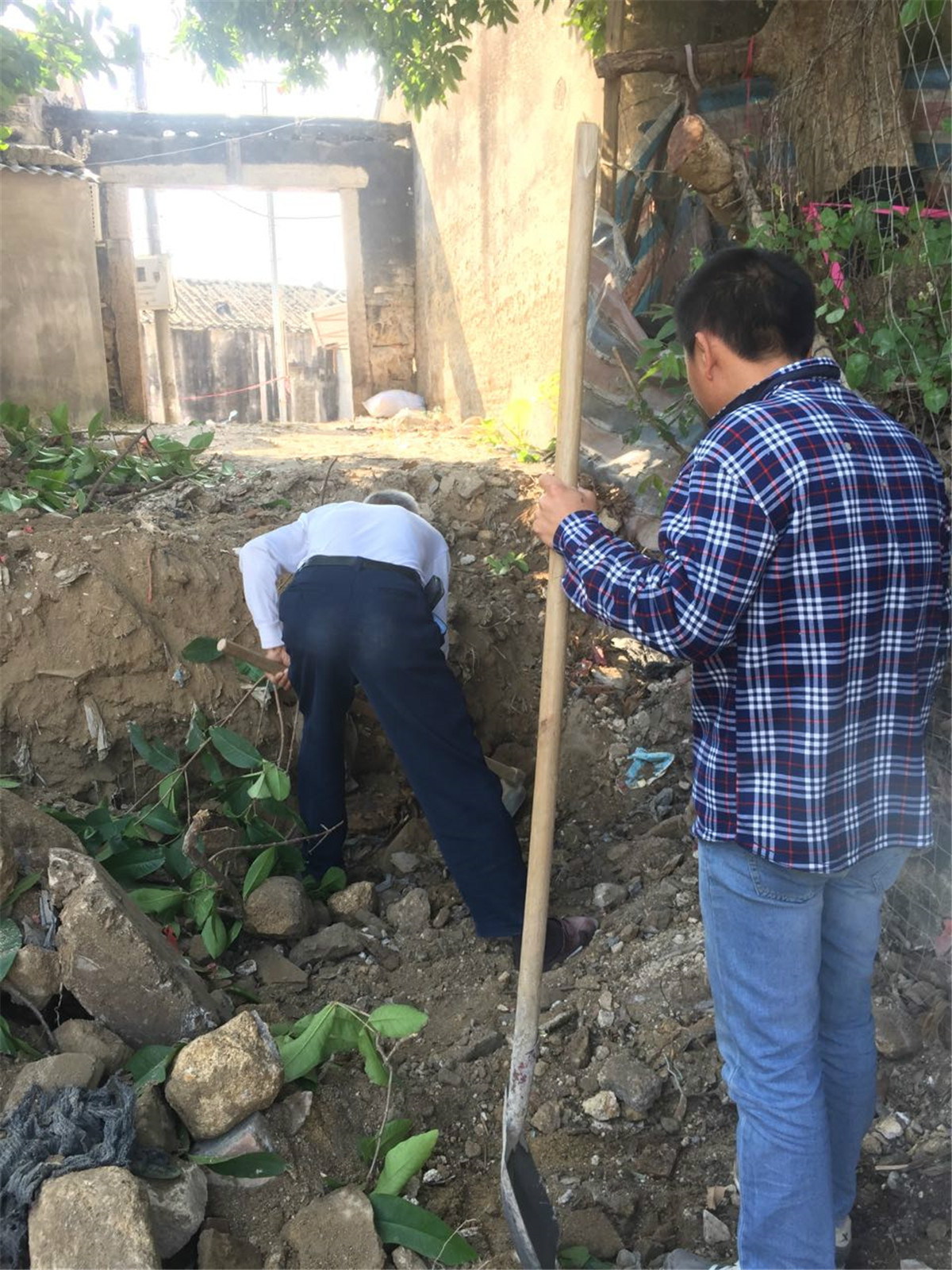 在清理河道兩邊環(huán)境衛(wèi)生時,得到村里老人的支持,有一位老者提供了重要線索,“小時候,他爺爺就常跟他講述樟林古港的故事”,老人來到新興街東門附近,說:“這里,可能就是當年的古碼頭,人們從這里登船,去過番!