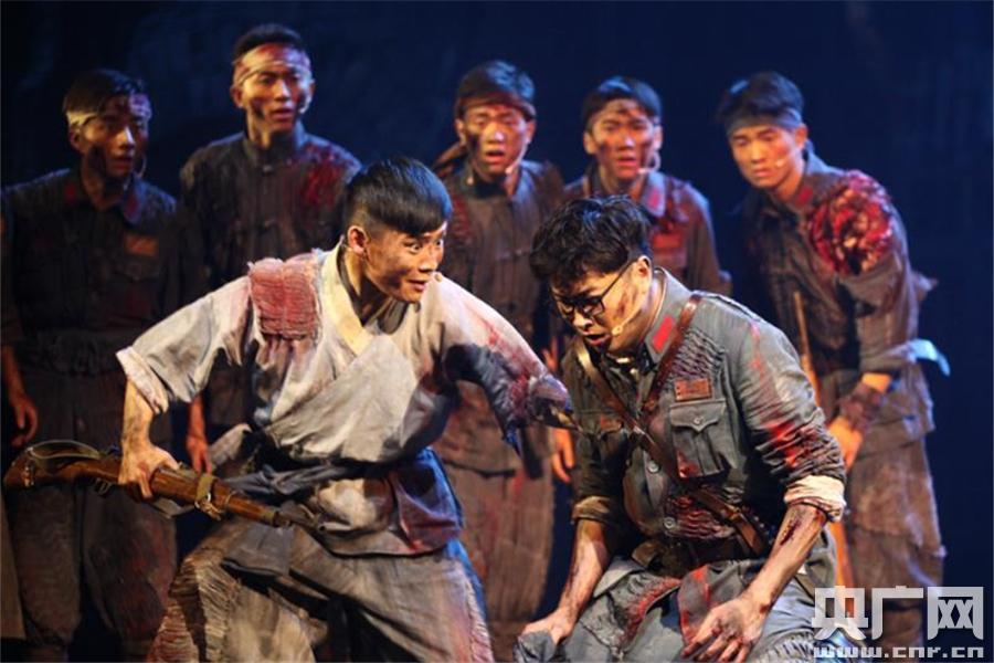 演員:每次排練很用心 候場(chǎng)時(shí)經(jīng)常看得眼圈發(fā)紅 男主角張浩天的扮演者蔡鵬主演過(guò)多部音樂(lè)劇,擁有豐富的音樂(lè)劇表演經(jīng)驗(yàn)。他表示,川軍在戰(zhàn)場(chǎng)中表現(xiàn)出來(lái)的悲壯、勇烈,讓《我是川軍》音樂(lè)劇排練起來(lái)心情很沉重。 蔡鵬說(shuō):“首先它是一個(gè)嚴(yán)肅的莊重的戲。很多專(zhuān)家老師來(lái)看,都說(shuō)是真實(shí)反映了川軍和那段歷史,所以這部戲在排練的過(guò)程中也是嚴(yán)肅認(rèn)真的甚至悲壯的。” “每場(chǎng)戲不只場(chǎng)上的演員,在旁邊候場(chǎng)的演員,經(jīng)?吹帽亲友廴Πl(fā)紅!卑缪菖鹘嵌啪甑挠髟皆秸f(shuō),“川軍的這種精神讓我們演員感動(dòng),所以我們每次排練都很認(rèn)真。感覺(jué)如果我們不認(rèn)真的話,就會(huì)覺(jué)得對(duì)不起他們的英魂! 不管是帶妝不帶妝,不管是探討表演方法還是嘗試角色塑造,所有演員每次排練都是跟正式演出一樣的表演。蔡鵬認(rèn)為,正式這樣的精細(xì)打磨,才讓音樂(lè)劇《我是川軍》的正式演出獲得了巨大成功。