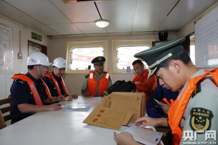 海事執(zhí)法人員介紹,隨著不久前第一艘載運(yùn)帝王蟹的俄羅斯籍漁船靠泊橫沙國際一級漁港碼頭,該水域附近的船舶流逐漸增多,同時(shí)伴隨著工程船、漁船、運(yùn)輸船等各類船舶的交織,水域環(huán)境監(jiān)管壓力凸顯,為此崇明海事部門聯(lián)合邊防等其他水上監(jiān)管力量開展聯(lián)合檢查,并宣傳解讀即將實(shí)施的《中華人民共和國船舶安全監(jiān)督規(guī)則》相關(guān)規(guī)定。