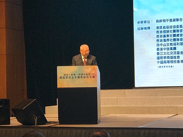 新黨主席郁慕明應(yīng)邀專程從臺灣到香港參加紀(jì)念大會,他致辭表示,和平發(fā)展、終極統(tǒng)一永遠(yuǎn)是兩岸關(guān)系的主軸心;兩岸四地互惠共贏永遠(yuǎn)是兩岸關(guān)系的主旋律;振興中華、光宗耀祖,永遠(yuǎn)是兩岸關(guān)系的主愿景。
