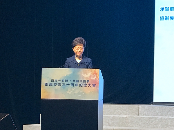 央廣網(wǎng)香港9月5日消息(記者周偉琪)“兩岸一家親·共圓中國夢”的兩岸交流三十周年紀(jì)念大會昨天(4日)在香港會展中心舉行,兩岸四地各界近千人出席活動。全國政協(xié)副主席董建華、香港特別行政區(qū)行政長官林鄭月娥、國務(wù)院臺灣事務(wù)辦公室主任張志軍等出席大會并分別致辭。