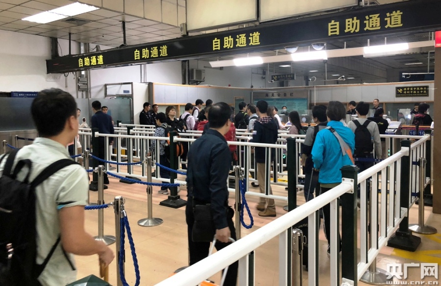 旅客經(jīng)皇崗口岸入境大廳新建自助通道快捷通關(guān)