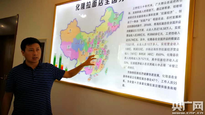在海東市化隆回族自治縣,各項(xiàng)扶貧工程中有一項(xiàng)很特別:拉面扶貧工程。目前,化隆人在全國各地開辦了1.5多萬家拉面館,從業(yè)人員10萬多人,占全縣人口的1/3,拉面經(jīng)濟(jì)收入占全縣農(nóng)民人均收入一半以上,勞務(wù)輸出是化隆縣城鄉(xiāng)富余勞動力增收脫貧的重要渠道。