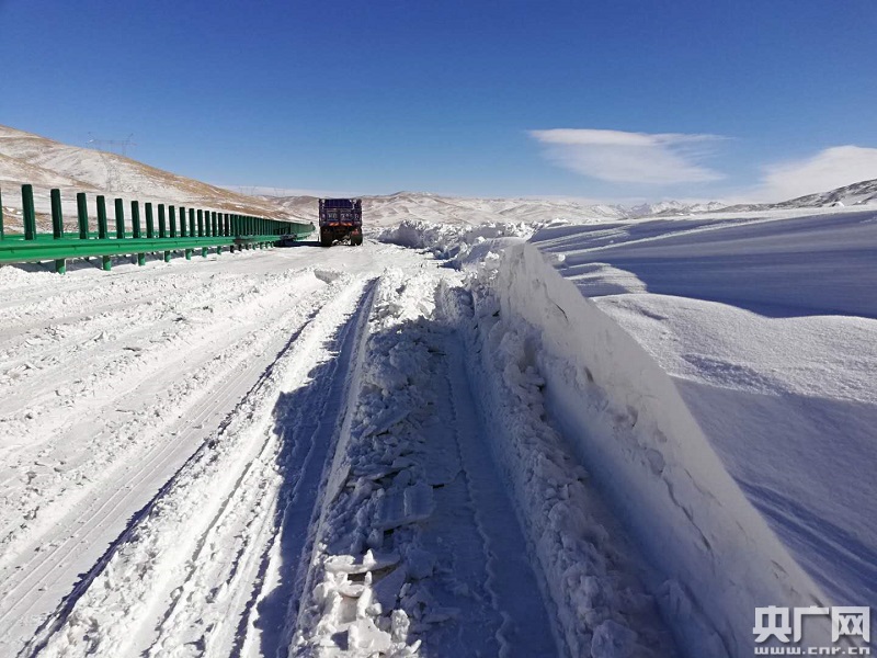 強(qiáng)降雪導(dǎo)致路面積雪嚴(yán)重 央廣網(wǎng)發(fā) 瑪多交警供圖