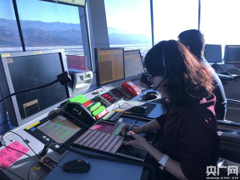 央廣網(wǎng)西寧1月23日消息(記者劉澤耕 通訊員李雨濃)“02199,西寧塔臺早上好……跑道外稍等一分鐘……地面風(fēng)290.5m/s,可以起飛……”在青海西寧曹家堡國際機(jī)場塔臺,民航青?展芊志炙_管制員袁佳瑞頭戴耳麥,手持話筒,通過無線電調(diào)配飛機(jī)的飛行高度、方向以及起降時的飛行動態(tài),目光緊盯飛機(jī)一直到其消失在視線之內(nèi)。袁佳瑞說,在飛機(jī)起飛降落過程中,要保證跑道沒有航空器等障礙物,做到掃視跑道,目迎目送。