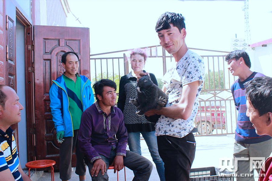 圖木舒克的村民專程驅(qū)車前來購買種兔(央廣網(wǎng)發(fā) 曹敦斌 攝)