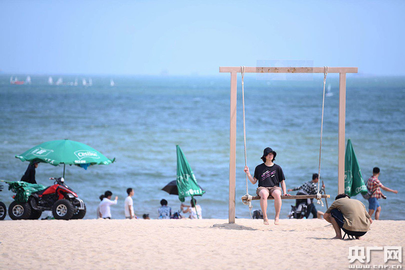 在海邊休閑的人們。(央廣網發(fā) 官文清攝)