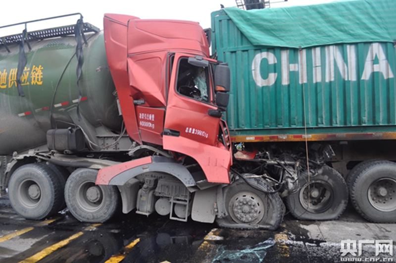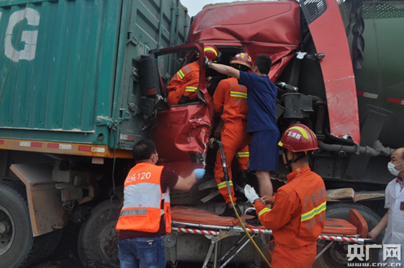央廣網(wǎng)汕頭5月30日消息(記者鄭澍)記者從汕頭交警部門獲悉,5月30日早上,324國道潮南路段發(fā)生一宗三車碰撞致一人死亡交通事故。經(jīng)初步調(diào)查,6時(shí)50分左右,吳某昌(男,37歲,福建省永定縣人)駕駛一輛閩F籍重型半牽引車沿324國道從潮陽往普寧方向行駛,途經(jīng)324國道潮南區(qū)民生醫(yī)院路口時(shí),碰撞到前方正在等紅綠燈的粵D籍重型半掛牽引車和粵V籍輕型廂式貨車,造成吳某昌駕駛的車輛駕駛室嚴(yán)重變形。