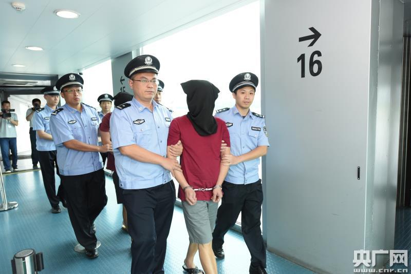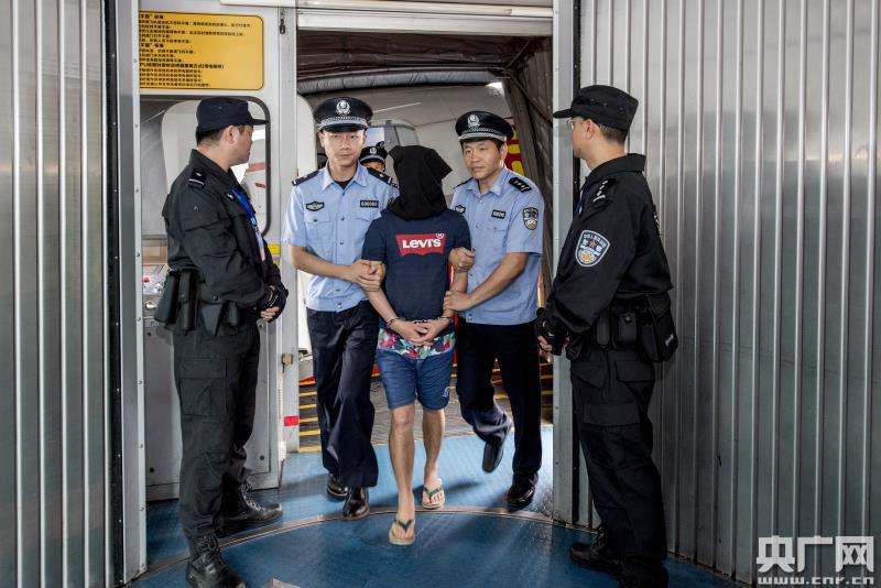 圖為汕頭海關(guān)緝私警察將犯罪嫌疑人押解回國(guó)。(央廣網(wǎng)發(fā) 袁國(guó)宏攝)