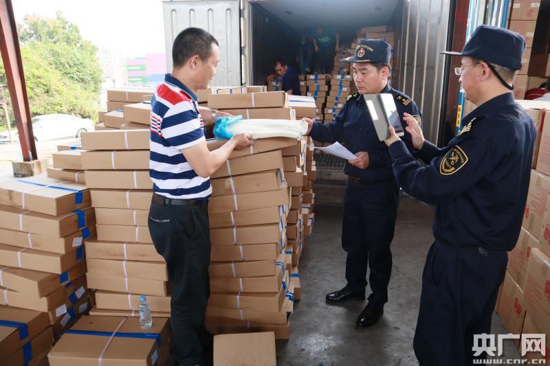 汕頭港海關(guān)關(guān)員查驗(yàn)進(jìn)口凍魷魚。(央廣網(wǎng)發(fā) 黎逸穎攝)