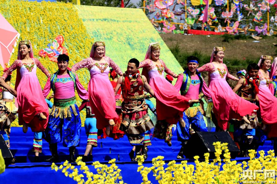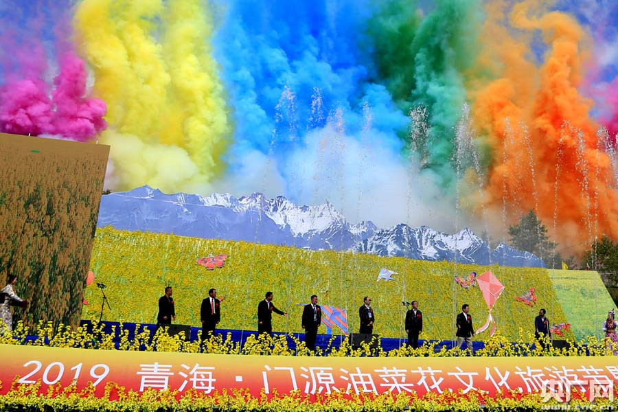 2019青!らT源油菜花文化旅游節(jié)暨首屆中國祁連山風箏節(jié)開幕(央廣網記者 張雷 攝)