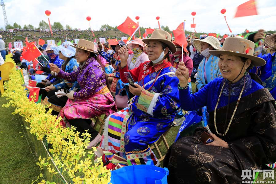 身著鮮艷民族服裝的觀眾(央廣網記者 張雷 攝)