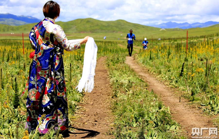 來自香港的選手胡女士第一次在內(nèi)地參加高原的跑步比賽,完成比賽后她表示:高原跑步雖然挑戰(zhàn)大,但青,斍叩乃{(lán)天綠草和藏族志愿者的熱情支持著她跑完全程,瑪沁真是一個(gè)圣潔美麗的地方。