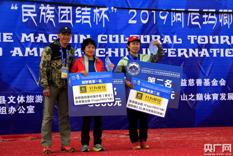 為獲得女子越野跑前兩名的選手頒獎(jiǎng)(央廣網(wǎng)記者 張雷 攝)