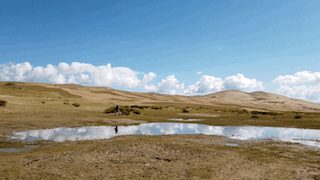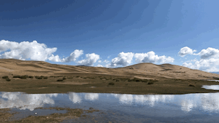 移步景區(qū)內(nèi),棧道、公廁、觀景平臺(tái)等設(shè)施不見蹤影,只見到保護(hù)區(qū)的監(jiān)測人員正在對(duì)遷徙期的水鳥進(jìn)行統(tǒng)計(jì)和監(jiān)測。來到沙島景區(qū)的核心區(qū),記者腳下松軟金黃的沙丘在高原上綠意盎然。野花野草在風(fēng)中搖曳,和煦的陽光泛在湖面上,閃著璀璨的粼粼波光,湖面上倒映著藍(lán)天碧云的圖景。
