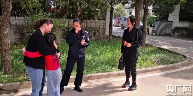 臨別時(shí),依依不舍的小女孩給了女警鄧菲、金慧一個(gè)暖暖的擁抱表達(dá)謝意,當(dāng)場感動(dòng)得女警落淚。