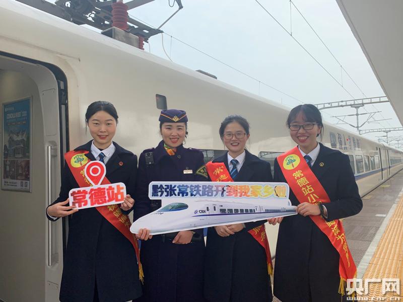 黔張常鐵路開通運(yùn)營(yíng)后首趟列車開行至常德站(央廣網(wǎng)發(fā) 通訊員 李悅 靖如潔供圖)