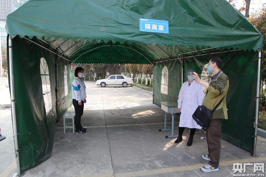 圖為西安市高新一中調(diào)式學(xué)生入校體溫檢測(cè)設(shè)施(央廣網(wǎng)記者 舒隆煥 攝)