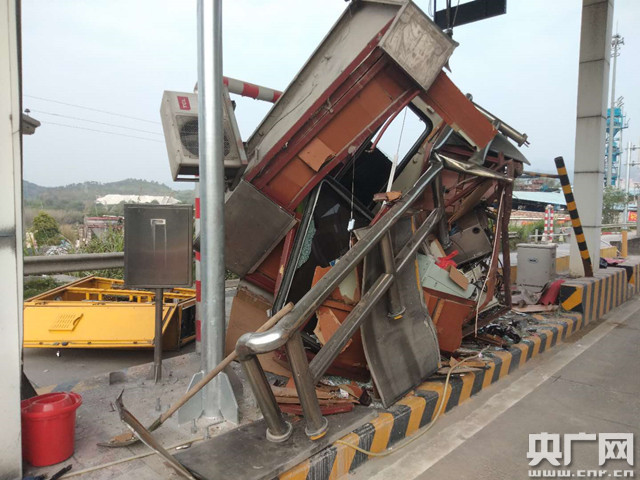 巨大的沖擊力使得整個(gè)收費(fèi)亭被掀翻造成散架,玻璃碎裂一地,地下的電線電纜連根拔起。員工小周當(dāng)時(shí)正在亭內(nèi)記錄過往貨車稱重?cái)?shù)據(jù),忽然間被亭內(nèi)傾倒的設(shè)備壓住,受傷不能動(dòng)彈。在貨車后面追趕的小林下意識(shí)地繼續(xù)高喊,但肇事司機(jī)曾某不予理會(huì),加速逃離現(xiàn)場(chǎng)。