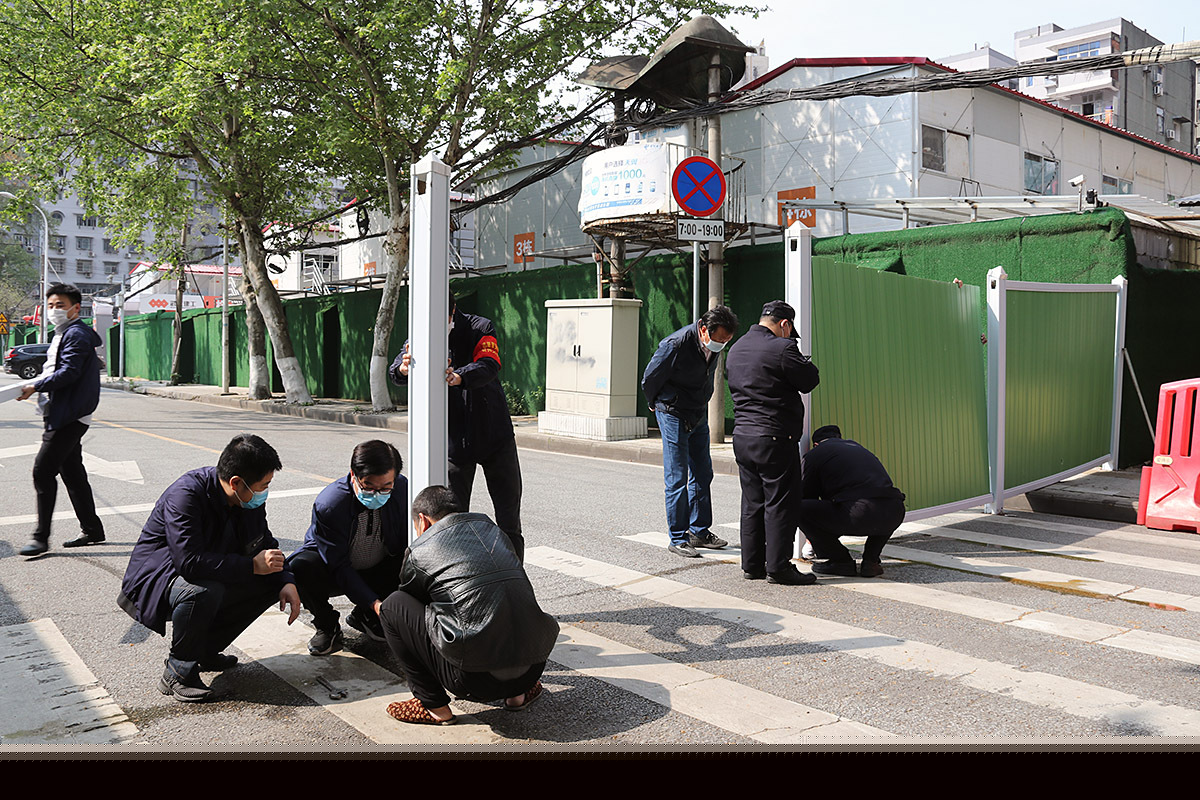 4月8日上午,武漢市江岸區(qū)大智街辦事處工作人員正在拆除道路圍擋。(央廣網(wǎng)記者 張卓 攝)