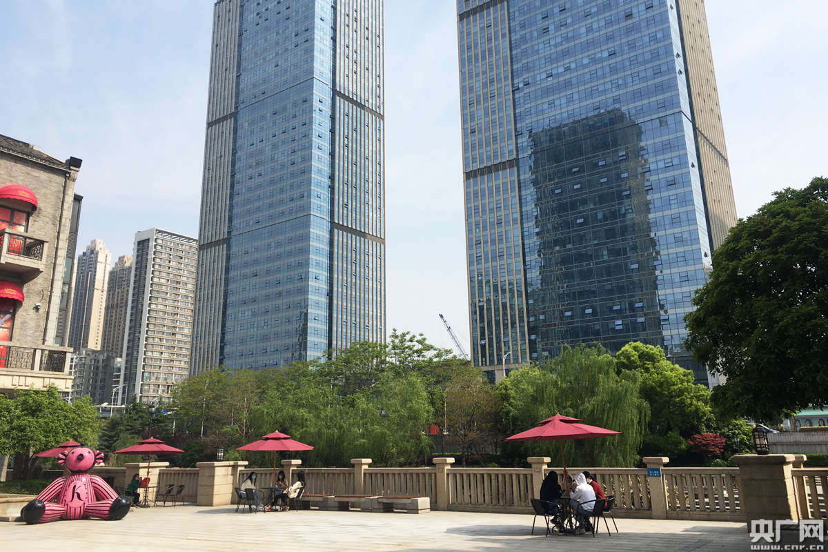 人間四月天,陽光正嫵媚。4月8日上午,在武漢市楚河漢街步行街,不少年輕人在同朋友一起享受春日陽光的暖意,旁邊是林立的寫字樓。(央廣網(wǎng)記者 熊峰 攝)