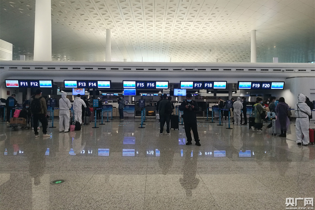 4月8日上午6點半,旅客在天河機場人工窗口排隊辦理值機手續(xù)。(央廣網(wǎng)發(fā) 武漢天河機場供圖)