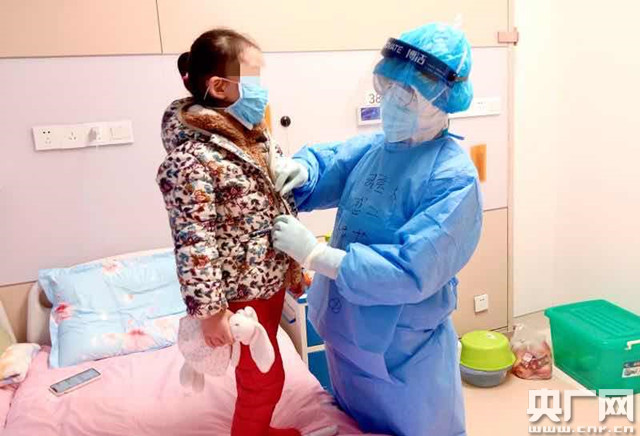 李莎莎在隔離病區(qū)悉心照護小患者(央廣網(wǎng)發(fā) 通訊員曾理 攝)